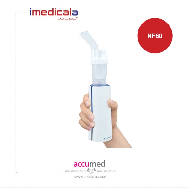 نبولایزر اکیومد NF60، دارای شیر انحصاری و پمپ کوچک است. اکیومد NF60 دارای ماسک و قطعاتی است که هم برای کودکان و هم برای بزرگسالان مورد استفاده قرار میگیرد. این محصول کوچک و کم صدا بوده و قابل استفاده در منزل است.